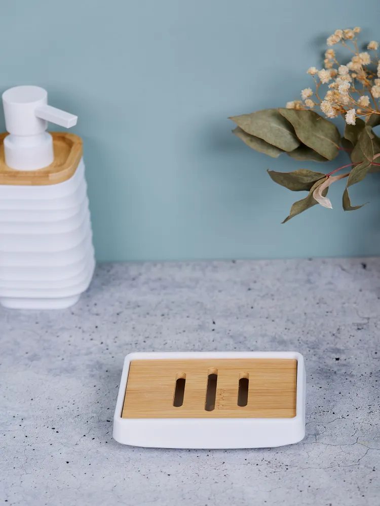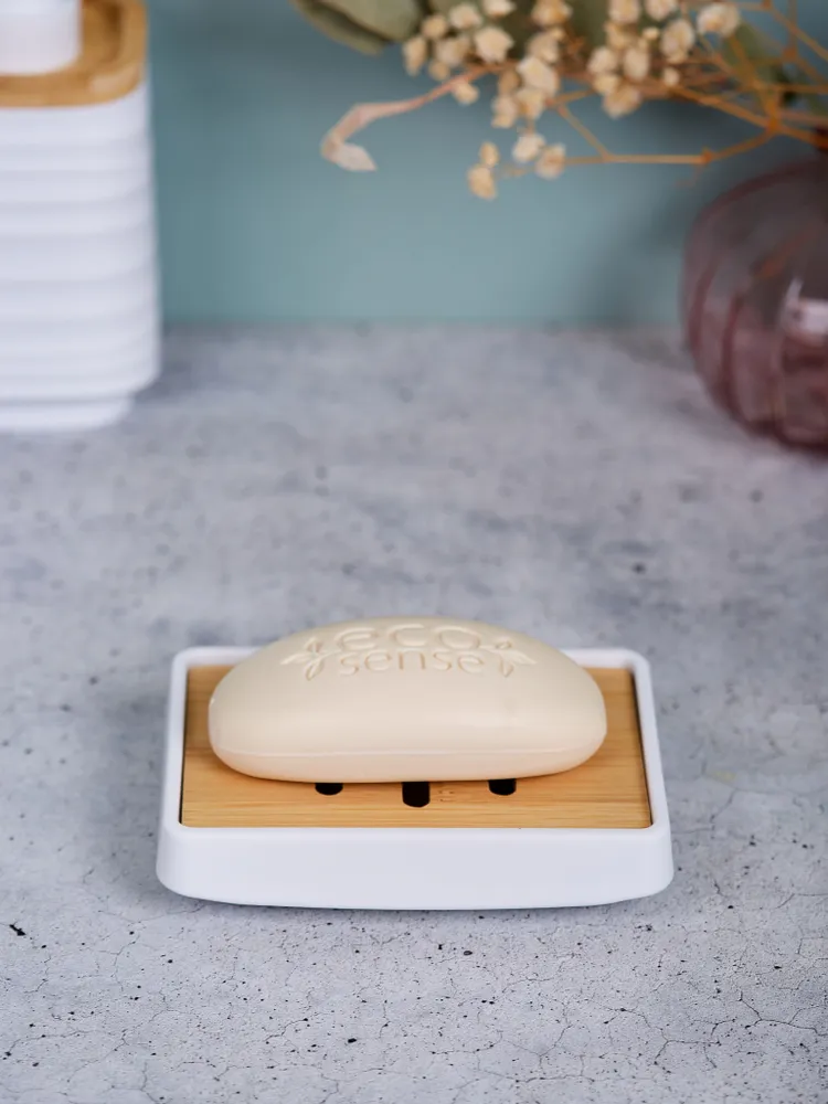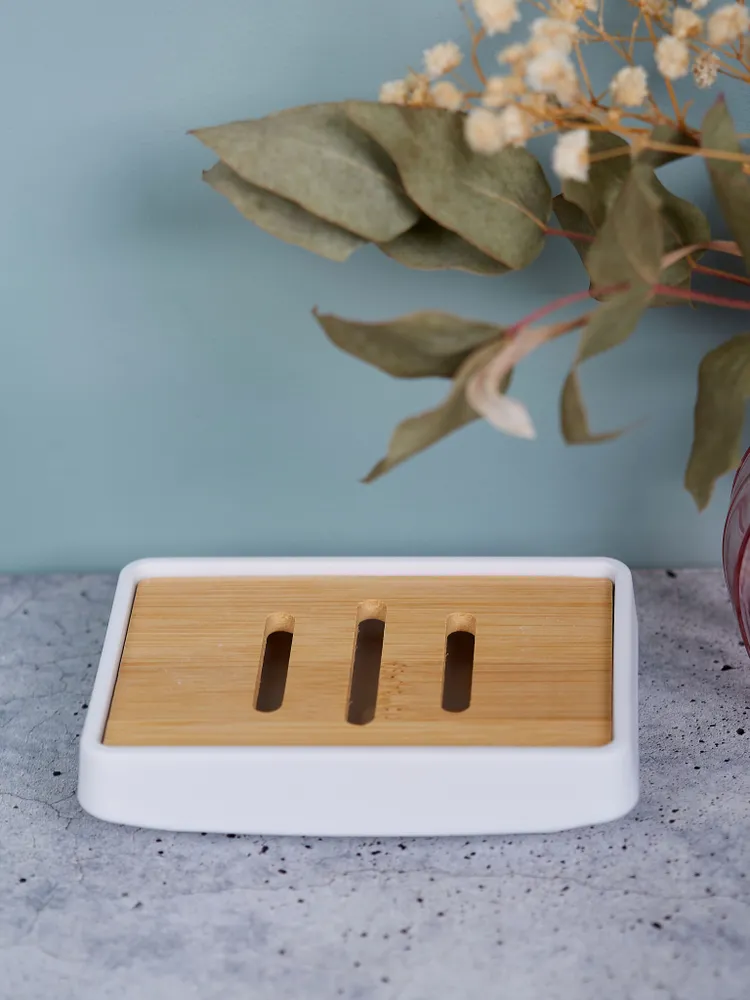 Элементы из дерева добавляют естественности и теплоты, создавая уютную атмосферу. Благодаря современному дизайну, мыльница идеально впишется в любой интерьер, будь то классический или минималистичный стиль. Размер и форма делают ее универсальной и удобной для использования.