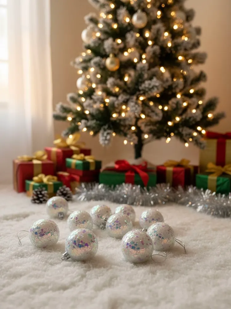 - Серебристый оттенок гармонично сочетается с любыми элементами декора, добавляя елке сказочной мерцающей глубины.