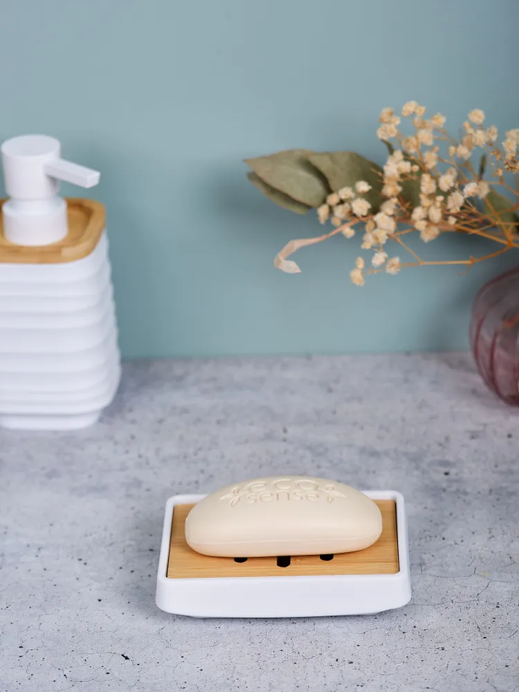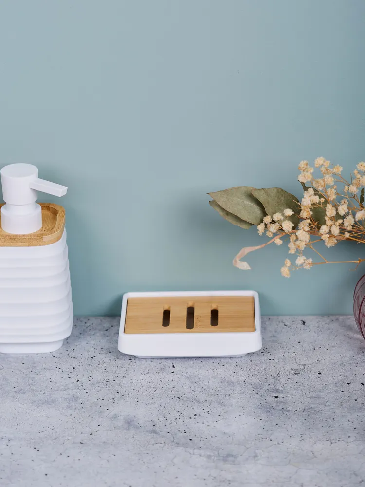 Элементы из дерева добавляют естественности и теплоты, создавая уютную атмосферу. Благодаря современному дизайну, мыльница идеально впишется в любой интерьер, будь то классический или минималистичный стиль. Размер и форма делают ее универсальной и удобной для использования.