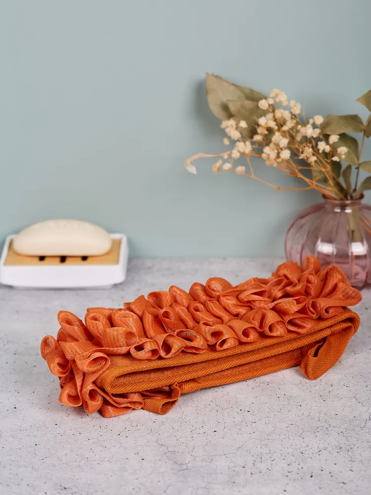 Мочалка изготовлена из натуральных материалов, которые не вызывают раздражения или аллергии. Она легко чистится и быстро сохнет, что делает её удобной в использовании. Мочалка подходит для всех типов кожи и может использоваться как самостоятельно, так и в сочетании с другими средствами по уходу за кожей.