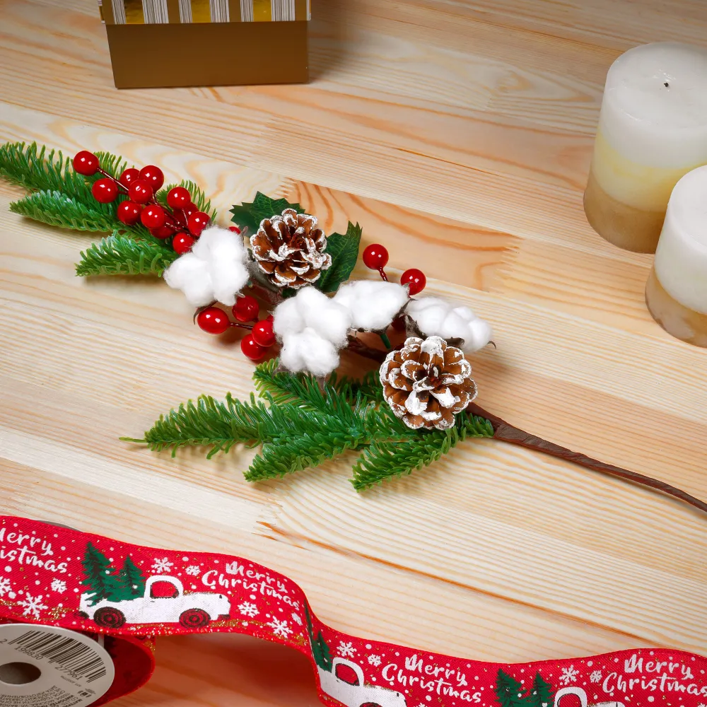 Эта новогодняя ветка подойдет для декорирования в самых разных стилях — от классического до современного. Вы можете использовать ее для создания оригинальных композиций на столе, украшения елки или оформления стен. Благодаря своим размерам, она легко впишется в любое праздничное оформление, добавив нотку уюта и стиля.