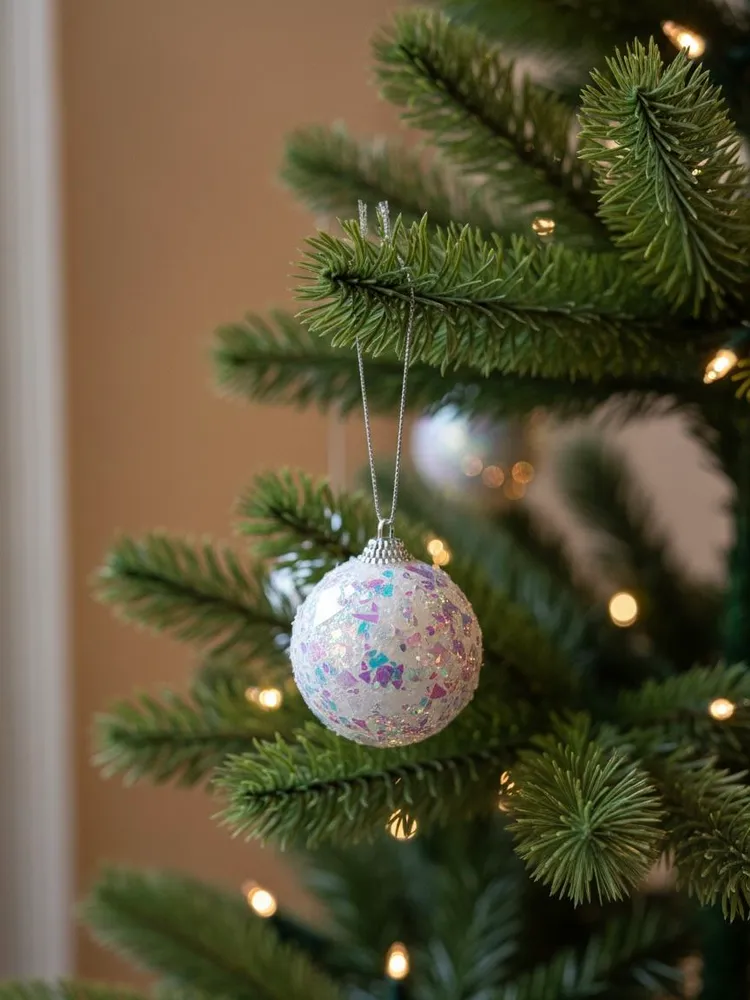 - Серебристый оттенок гармонично сочетается с любыми элементами декора, добавляя елке сказочной мерцающей глубины.