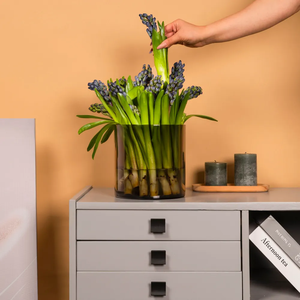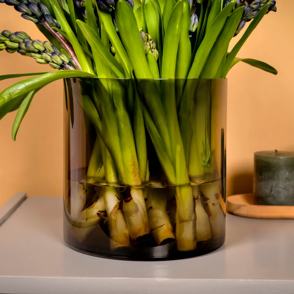 Отличный выбор для живых цветов, искусственных композиций или даже как самостоятельный элемент декора — с её помощью вы сможете выразить свою индивидуальность и добавить оригинальности любому пространству. Цилиндрическая форма в сочетании с компактными размерами делает её универсальным аксессуаром, который вы сможете разместить на столе, подоконнике или в саду.