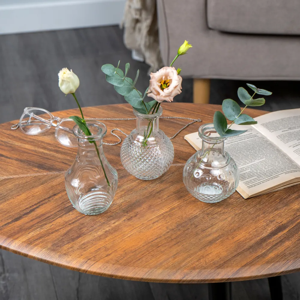 Каждая вазочка изготовлена из качественного стекла, что обеспечивает долговечность и надежность изделия. Прозрачный материал отлично подчёркивает естественную красоту растений и цветов, создавая атмосферу уюта и гармонии в любом помещении. Компактный размер вазочек - всего 12 см - позволяет разместить их в самых разных местах: на подоконнике, полке, стеллаже или журнальном столике.