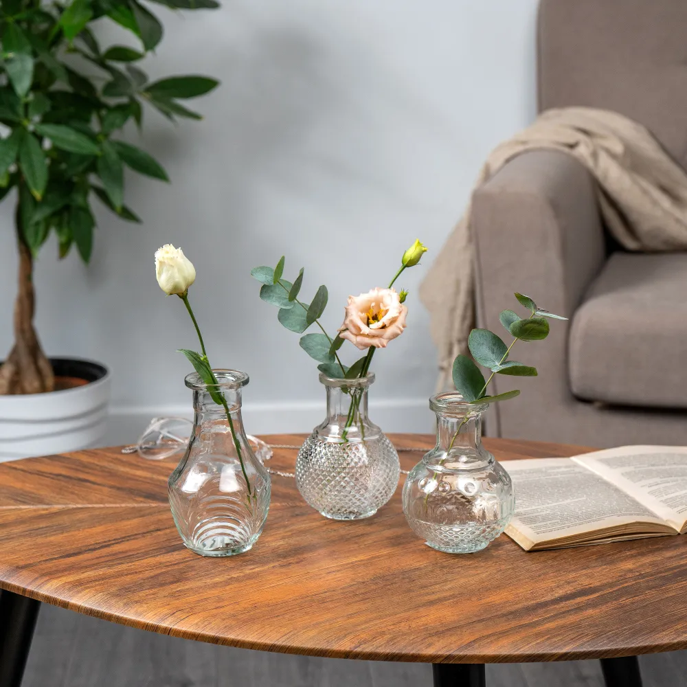 Набор из трех стеклянных вазочек от Цветовик подходит для любого стиля интерьера, будь то классика, минимализм или современный дизайн.