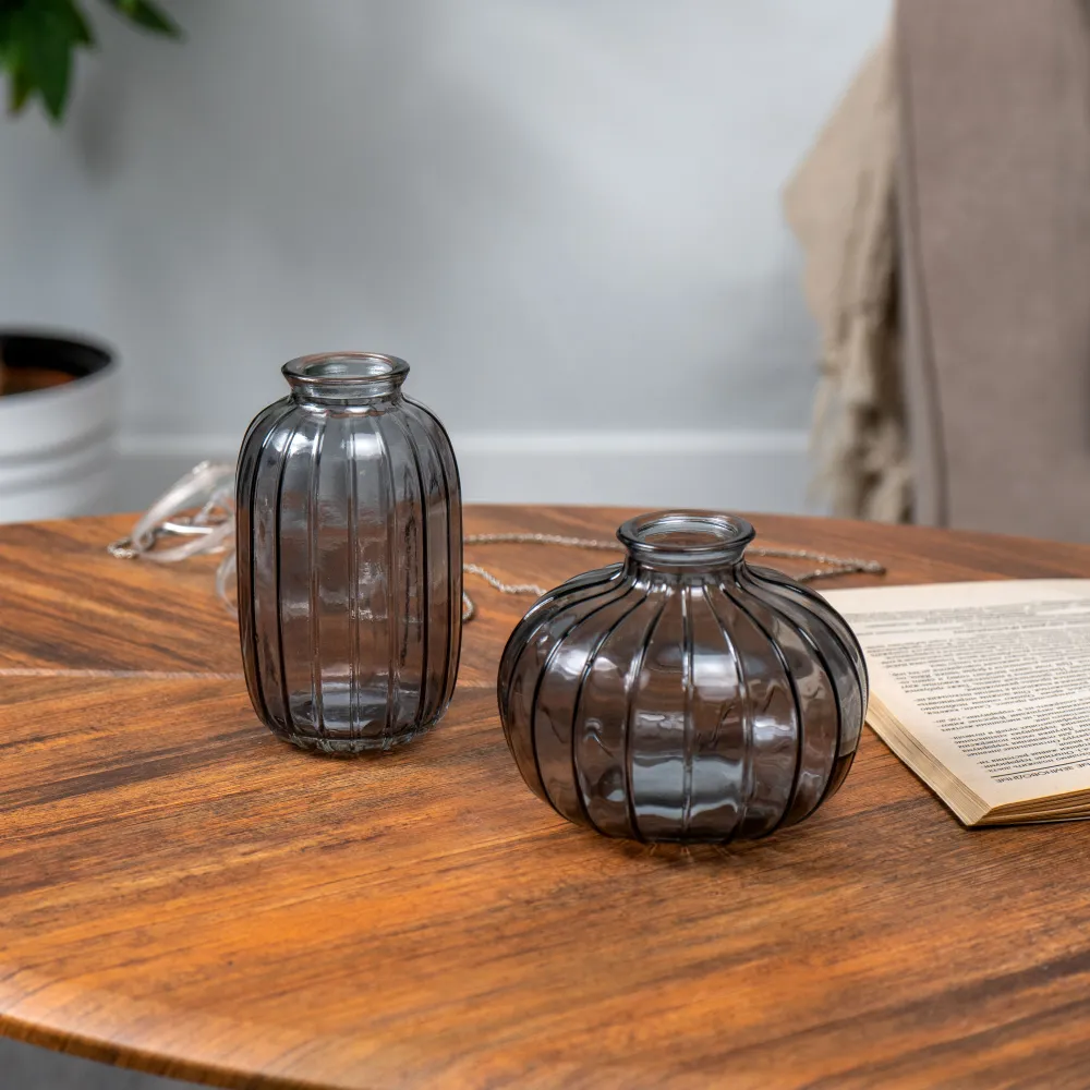 Этот набор стеклянных ваз станет отличным вариантом для декора интерьера в стиле минимализм, лофт или скандинавский. Серый цвет ваз гармонично сочетается с любыми цветами и оттенками, делая акцент на естественной красоте растений.