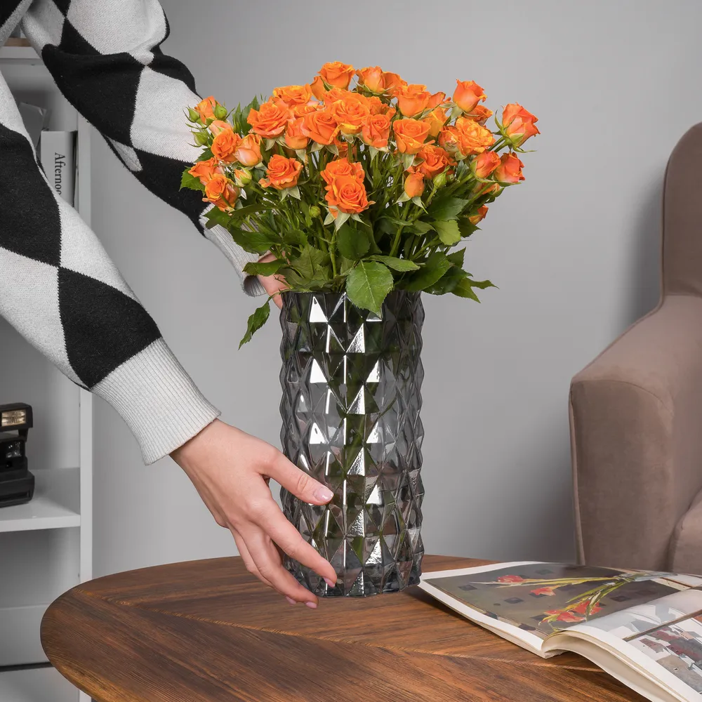 Ее гармоничный дизайн позволяет использовать вазу в различных стилях оформления – от классического до современного. Прозрачный материал делает ее универсальным решением для любых композиции, будь то свежие букетики, сухие цветы или даже оригинальные декорации.