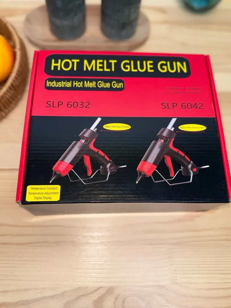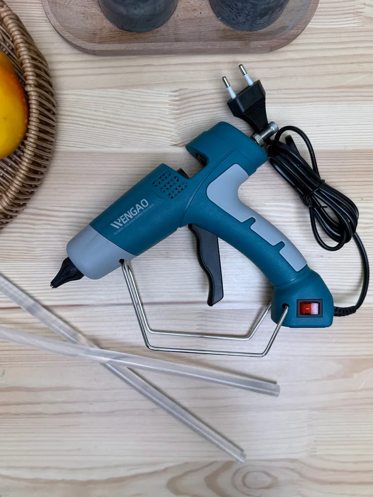 Клейовой пистолет имеет удобную ручку, которая обеспечивает комфортное управление при работе с клеем.
