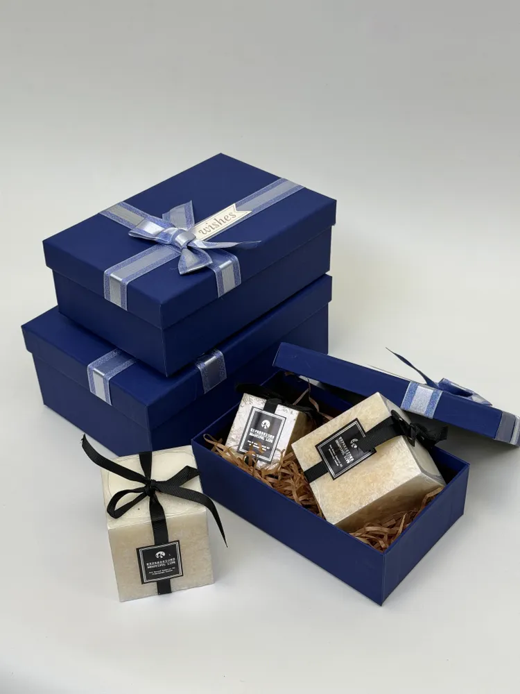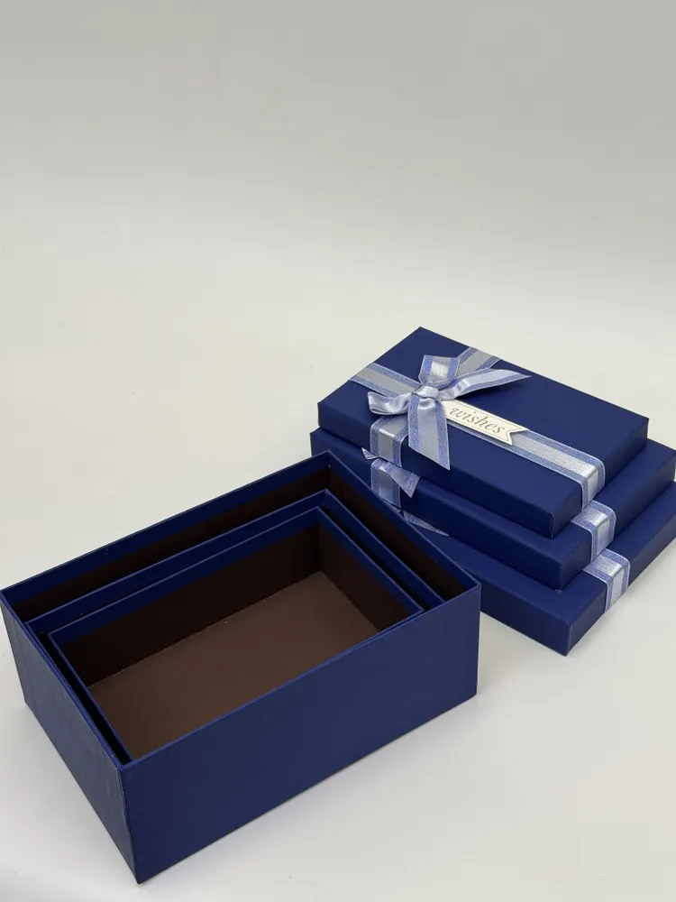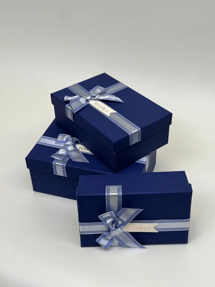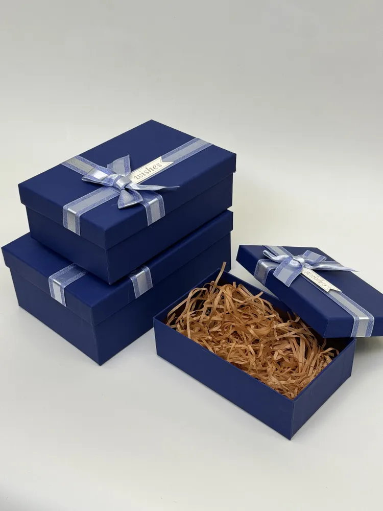 Эти коробки выполнены в элегантном синем цвете, который будет отлично сочетаться с любым оформлением праздничной обстановки. Они изготовлены из качественных материалов, обеспечивающих долгий срок службы и надежность при хранении и транспортировке ваших ценных вещей.